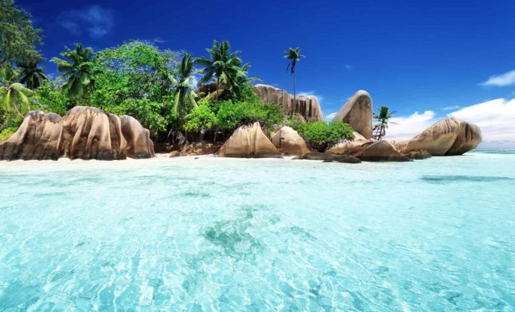 Située sur l’île de La Digue, Anse Source d’Argent est souvent classée parmi les plus belles plages du monde. Elle se distingue par son sable blanc éclatant, ses eaux turquoise peu profondes et ses impressionnants rochers de granit qui ajoutent une touche spectaculaire au paysage.